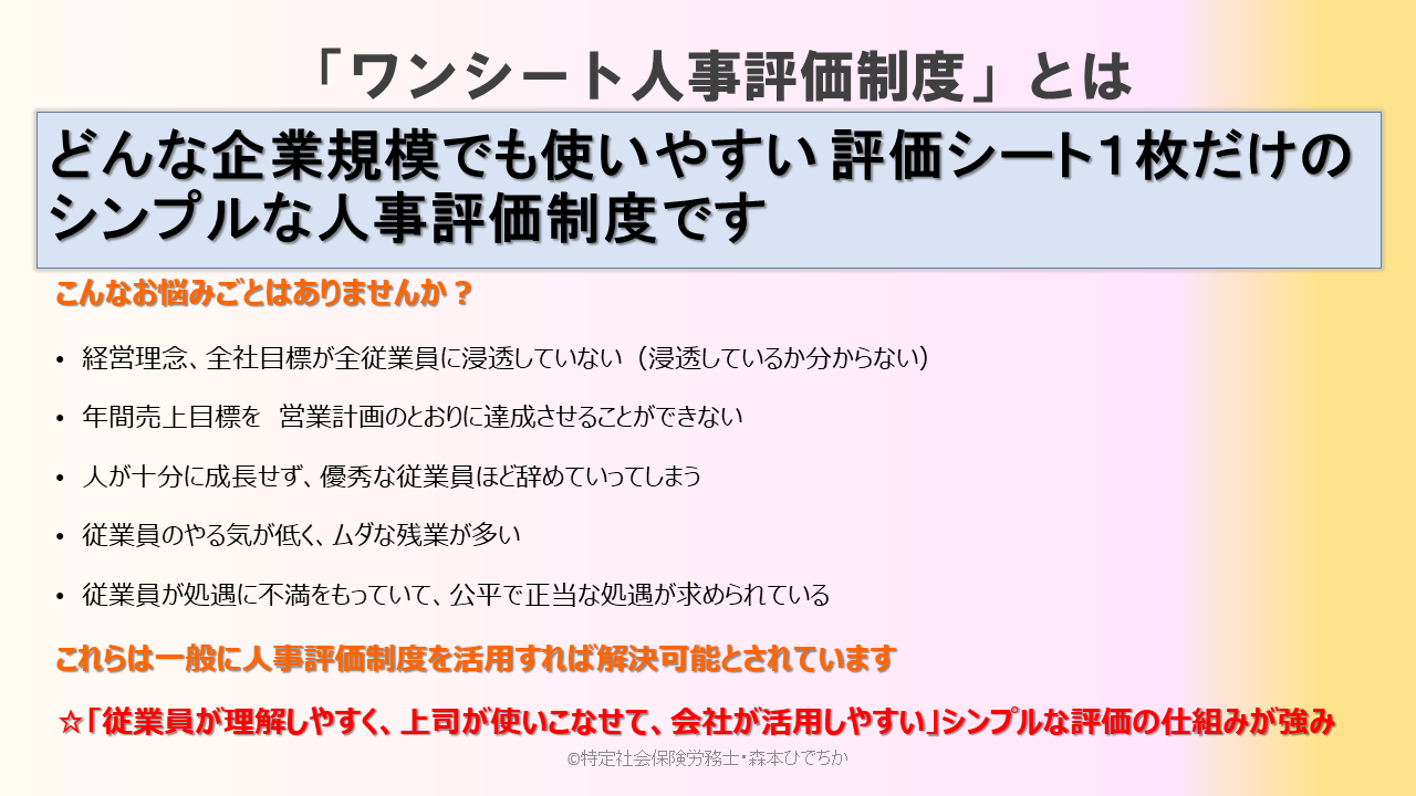 ◆弊所は、中小企業が使いやすいシンプルな人事評価制度の導入が得意です。従業員の人物像が見渡せるワンシート考課表を用い、生成AIも活用してきめ細かい分析や評価付けが行えるようになります。