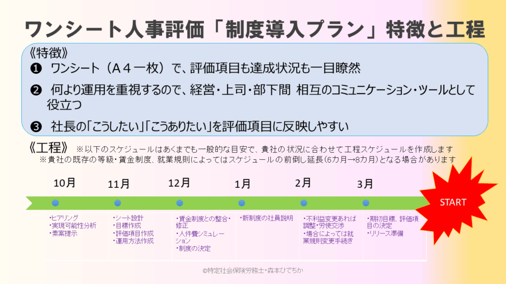 ◆弊所は、中小企業が使いやすいシンプルな人事評価制度の導入が得意です。従業員の人物像が見渡せるワンシート考課表を用い、生成AIも活用してきめ細かい分析や評価付けが行えるようになります。